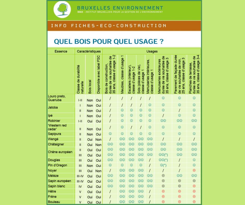 QUEL BOIS POUR QUEL USAGE ?Info-fiche Bruxelles-Environnement