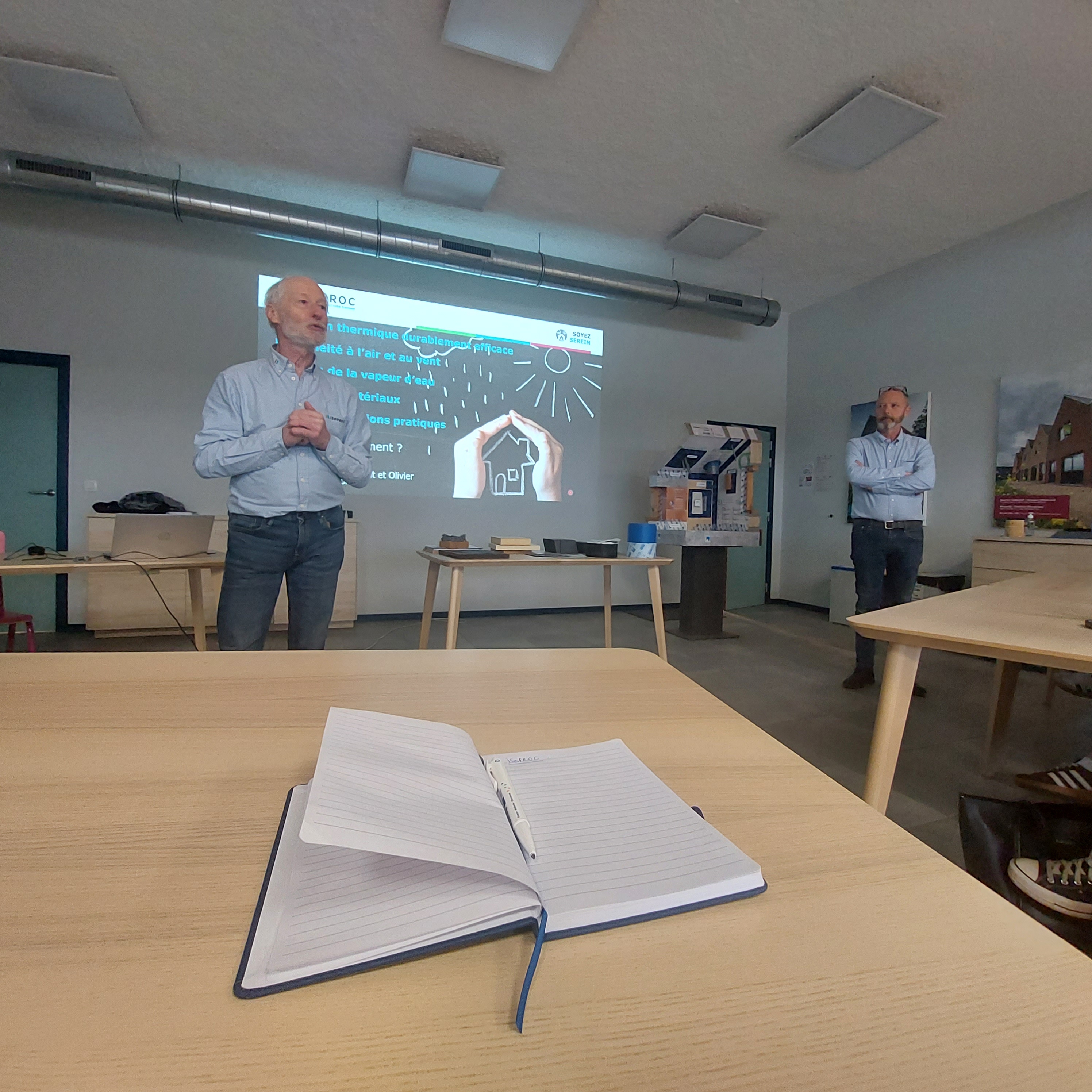 Baivier, André et ses collègues d’ISOPROC pour leur introduction théorique de haute volée sur l’étanchéité à l’air et la visite du site de production de ouate de cellulose,