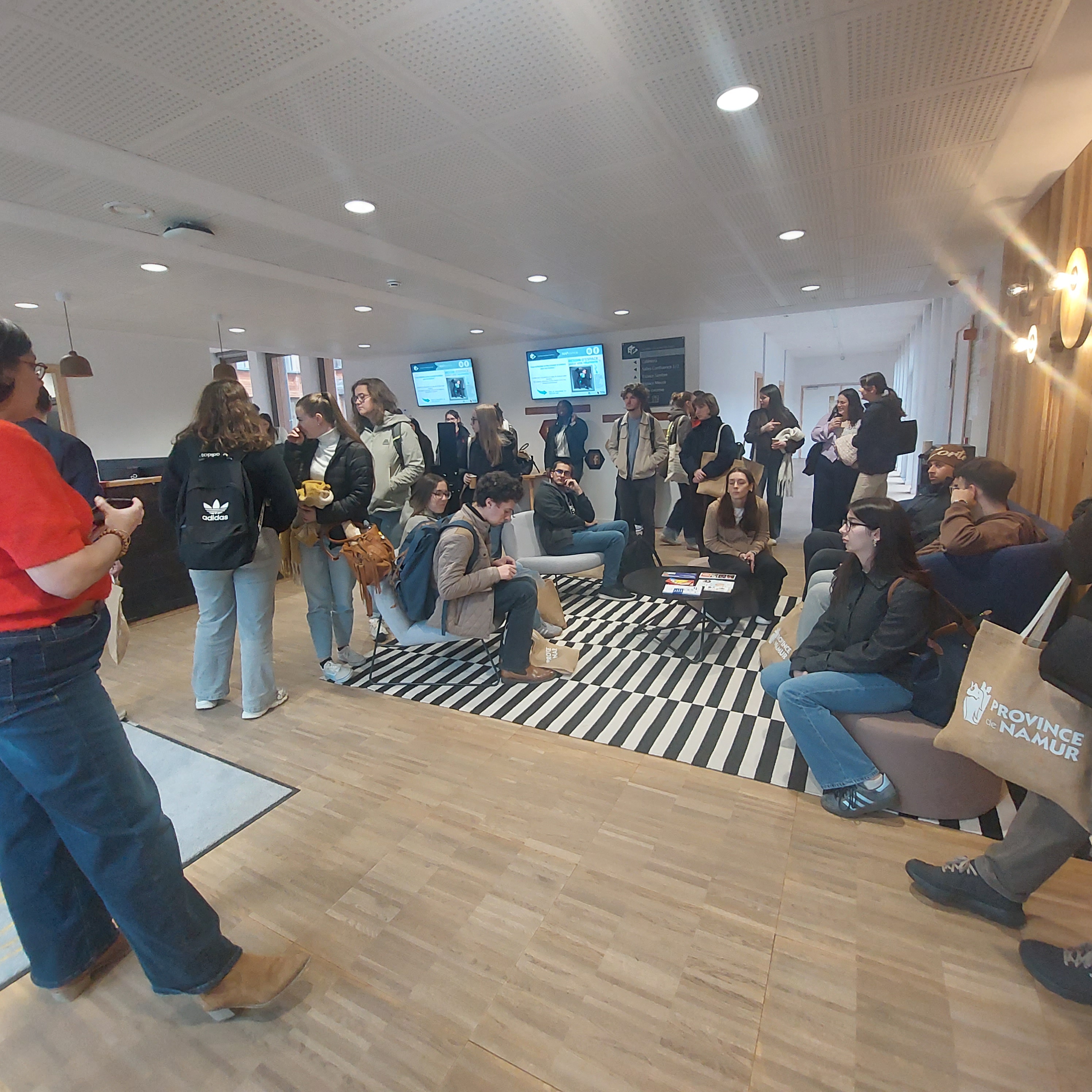 Eleny Tuttobene et sa collègue Nadine de la Province de Namur pour la visite de la Maison d’Administration Provinciale ; belle réussite architecturale et humaine malgré les nombreuses contraintes rencontrées,